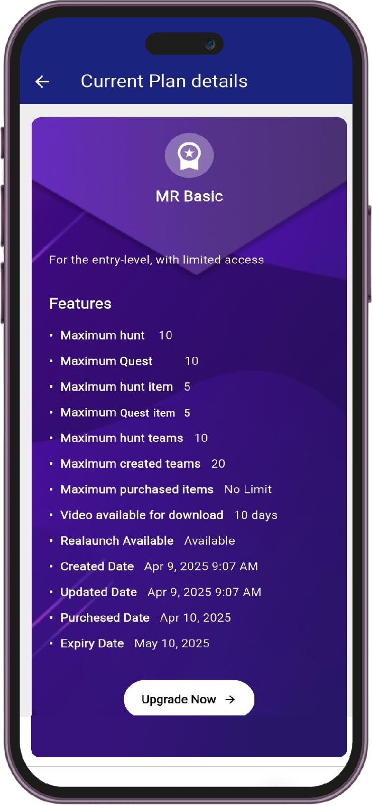 We offer different pricing plans to meet the needs of our users. It is easy to upgrade your plan within the Scavengertime App.